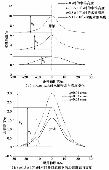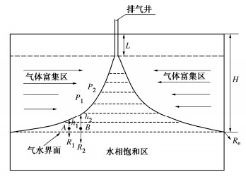 It is of great significance to study the water-gas interface migration in gas reservoirs caused by gas release for advanced exhaust wells. Based on the theory of elastic water drive gas reservoirs, a theoretical model describing the variation of gas-water interface in reservoirs is derived. The controlling gas exhaust of the reservoirs in Hangzhou Bay is simulated, and the evolution laws of water-coning formation, shape and height in the reservoirs under different wellhead velocities are emphatically discussed. The results show that different degrees of water coning occur in the process of the exhaust, and the water coning directly affects the efficiency of the exhaust wells. The wellhead velocity is the most significant factor affecting the shape and height of the water-coning, and it is negatively correlated with the water coning sweep area and positively correlated with the water-coning height. The larger the wellhead velocity, the sharper the shape of water coning. The smaller the wellhead velocity, the gentler the water coning shape. During the same exhaust time, the larger the water-coning sweep area, the better the exhaust effects. The higher the water-coning height, the faster the exhaust well flooded. In practice, a low wellhead flow-rate should be controlled to avoid premature well flooding so as to achieve the purpose of effective exhaust.