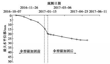 The continuous deformation of high expansive soil slopes of the South-to-North Water Diversion Project directly affects the operation safety of the water conveyance channels, so it is imperative to carry out danger removal and reinforcement measures. The umbrella-type anchor technology is a new type of prestressed anchor technology that is quick and efficient. Based on the embankment reinforcement project of high channel slope of expansive soils in Xichuan section of the Middle Route of South-to-North Water Diversion Project, the in stability situations and reasons of canal slopes are analyzed, and the deformation location of sliding surface and the sliding direction are predicted. The reinforcemetn design and construction technology for slope disasters are introduced, and the slope stability is monitored after the reinforcement. The engineering practice shows that the umbrella-type anchor technology can strengthen the channel slopes quickly, and the reinforcement effects are good. After the comprehensive analysis of the monitoring data and construction time, the technical advantage of the umbrella-type anchor technology in the reinforcement of high expensive soil slopes is verified.