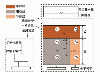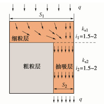 The anti-seepage capability of the traditional capillary barrier cover in humid regions is immature. The capillary barrier cover with unsaturated drainage layer (UDL) represents a new direction of applying the capillary barrier cover in humid regions. Through the laboratory rainfall infiltration model tests, the anti-seepage mechanism of the capillary barrier cover with UDL is analyzed, and the effects of width and permeability coefficient of UDL on its drainage performance are studied. The test results show that: (1) The newly added unsaturated drainage layer has the suction function. By setting the drainage layer, the breakthrough time is extended from 730 min to 990 min, an increase of 35.6%. (2) When the drainage layer and the fine-grained layer are constructed by using the same materials, there are few effects on the suction performance by increasing the width ratio of the drainage layer to the fine-grained layer from 1:8 to 1:4. (3) Increasing the ratio of permeability coefficient between the drainage layer and the fine-grained layer can enhance its suction effects and achieve the ideal working state in which all the infiltration water is discharged by the drainage layer. Finally, a preliminary criterion for the ideal drainage state of UDL is proposed, and its analysis results are in good agreement with the test ones. This study may provide a new reference for the structural optimization and design of the capillary barrier cover in humid areas.
