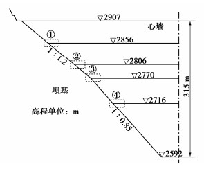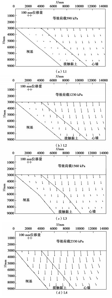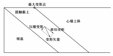 In order to study the deformation behavior of contact clay of an ultra-high core dam, 4 groups of centrifugal model tests are carried out. The results show that the differential deformations among the contact clay, bank and core wall are acceptable, and no separation are observed at contact parts. The deformations of the contact clay caused by vertical loads include the compression deformations vertical to the bank and the shear ones parallel to the bank. The contact clay is in the compression-shear state. The compression and shear deformations both increase with the loads in a log-linear trend. This trend is greater at steeper bank slope. The deformation development of the contact clay gradually becomes stable after construction.