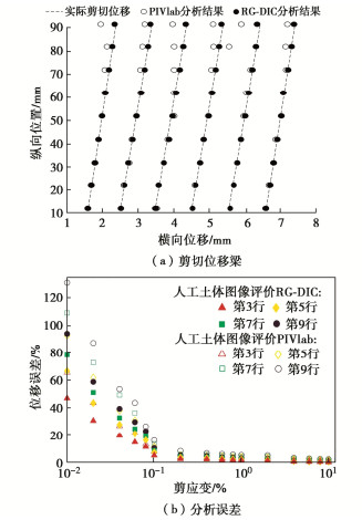 -3, the analysis error increases rapidly. The proposed method and results provide important supports and references for the development, application and reliability evaluation of soil image-based deformation analysis methods.