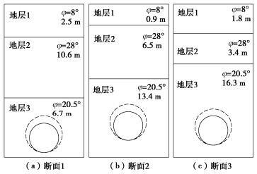 • 摘要: 为解决盾构上部多层水平覆土且开挖面内上下水平分层的复合地层条件下盾构施工引起的土体变形问题,在统一土体解析解法的基础上对其中土质条件影响参数进行修正,使其可以进行复合地层条件下的土体变形计算,并对土体移动焦点范围进行了重新的划分。将修正后的统一土体解析解法与类随机介质理论相结合,得到可以解决盾构开挖面上存在多种土层情况的计算方法,并且可适用于任意开挖面形状的盾构施工。研究结果表明:经过多组工程案例验算,验证了方法的可行性;开挖面上某一土层厚度等量增加会使土体变形发生非线性变化;由于土体损失比变形传递路径对土体变形的影响更大,相同洞径比下的土体变形可能存在差异。