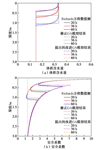 The rainfall infiltration analysis of slopes is of a great significance to the reinforcement design, mitigation and risk mitigation of rainfall-induced landslides. The classical Green-Ampt model, whose parameters have clear physical meanings and which is easy to implement, ignores the fact that a transition layer objectively exists in infiltration zone. It cannot effectively analyze the rainfall infiltration process of multi-layered heterogeneous slopes considering the spatial variability of hydraulic conductivity. To this end, an improved Green-Ampt model is proposed for the rainfall infiltration analysis of multi-layered heterogeneous slopes, and it considers the elliptical transition layer of rainfall infiltration and evaluates the water content distributions under different rainfall durations. Additionally, an infinite slope model is taken as an example to validate the effectiveness of the proposed improved Green-Ampt model through four common slope scenarios. The corresponding slope stability analyses under rainfall infiltration are also conducted. The results indicate that the distributions of volumetric water content and the factors of safety evaluated using the proposed model are well consistent with the numerical results of Richards' equation for these four slope cases. In contrast, the modified Green-Ampt model produces the biased distributions of volumetric water content and smaller factors of safety. In addition, the location of the critical slip surface of the slope can be accurately identified using the proposed improved Green-Ampt model. The research outcome provides theoretical references for the rainfall infiltration analysis of multi-layered heterogeneous soil slopes and the reinforcement design and risk control of rainfall-induced landslides.
