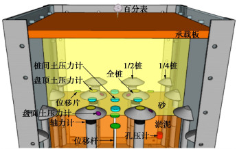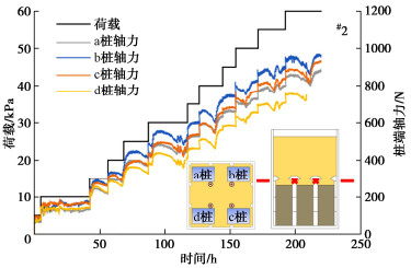 There are limitations from the pavement structure layer and construction site space during the deep soft soil reinforcement of the existing sand-filled subgrade in expansion of expressways. Firstly, a new method using the squeezed branch pile (SBP) with one single plate for treatment of the existing soft foundation is proposed. In this method, a plate is set on the top of the piler to achieve the effects similar to a pile cap or support plate without breaking the road structure layer. Secondly, a physical model test on the pile group foundation is performed, and a pile-soil unit is simulated to study the bearing behavior of the SBP. By analyzing the mechanical and deformation indices of the pile, plate and soil, the bearing performance and soil-deformation characteristics of the new reinforcement method are studied. Finally, a simplified two-dimensional model for the reinforcement method with SBPs for the existing sand-filled embankment is derived by considering the soil parameters and pile sizes. The results indicate that the axial force of piles and soil pressure vary with time under constant loads due to the compressibility of soft soil and the properties of loose sand. The total axial force at the top of the pile is approximately positively correlated with the magnitude of the constant loads linearly. At the same time, the larger the diameter of the support plate, the greater the total axial force at the top of the pile and the higher the proportion of pile-bearing loads. It is found that the pile-bearing ratio of the reinforcement method with SBPs is about 70%. In addition, the proposed two-dimensional simplified model for parameter analysis shows that the minimum pile spacing in the sand-filled subgrade is related to the overlying load, internal friction angle of sand-filled soil, strength index of deep soft soil and geometric parameters of support piles.