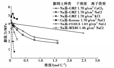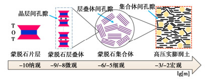 The swelling pressure of highly compacted bentonite, as the engineering barrier in the deep geological repository, is affected by its multi-scale microstructure as well as the near-field coupled thermo-hydro-chemical environment during its service period. Based on the analyses of multi-scale structure of the highly compacted bentonite, a thorough review of the multi-scale swelling pressure of compacted bentonite is introduced. It is indicated that the highly compacted bentonite consists of montmorillonite tactoid, aggregate and the unit specimen at different scales. At the microscale level, the molecular dynamics simulation methods are used to simulate the hydration expansion of montmorillonite interlayers and to elucidate the micro-mechanism of the development of swelling pressure of montmorillonite. At the mesoscale level, the elastic modulus of the montmorillonite aggregates is calculated by particle coarsening, and the structural model for montmorillonite aggregates at different dry densities is established. At the macroscale level, the constant volume swelling pressure tests are conducted to reveal the development of the swelling pressure of the high-density compacted bentonite under confined conditions in the near-field environment. Currently, the researches on the swelling pressure of the highly compacted bentonite at different scales are relatively independent, and there is significant size effect on the swelling pressure among different scales. The multi-scale coevolution mechanism of swelling pressure is not yet clear. Therefore, the systematic studies of the swelling pressure characteristics of montmorillonite tactoid, aggregate and highly compacted bentonite and the establishment of a multi-scale swelling pressure model will be the focus of future researches.
