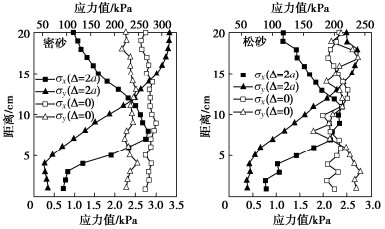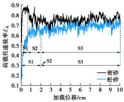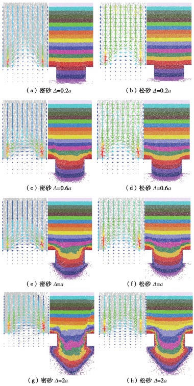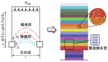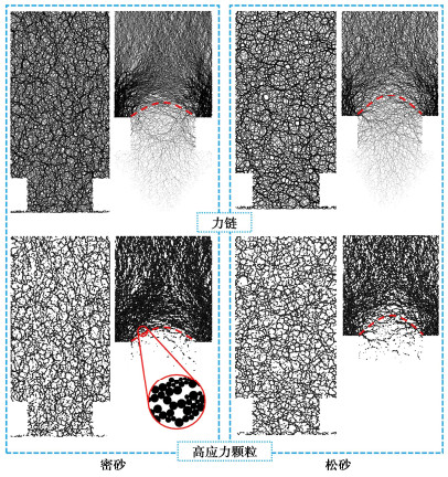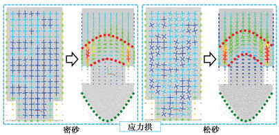 The non-continuous retaining structures such as anti-slide piles rely on the soil arching effects to provide support safely and economically in slope engineering. Considering the significant differences in the mechanical properties of sands, to reveal the mechanism and evolution patterns of horizontal soil arching between piles in sand slopes, the discrete element method (DEM) is used to simulate the formation process of horizontal soil arching. On the basis of the traditional force chain analysis, it is proposed to study the formation process of soil arching by screening high stress particles. Furthermore, the analysis of the soil arching effects under different conditions from a microscopic point of view is conducted to reveal the evolution process of "stress arching" and "displacement arching". The results demonstrate that the dynamic evolution of horizontal arching in both dense and loose sands can be divided into three evolutionary stages, corresponding to the shear behaviors of the two sands, i.e., strain softening and strain hardening phenomena, which reveals the evolution patterns of the soil arching effects in the sand slopes. Additionally, the influences of macro-micro DEM simulation parameters on the arching process and performance are discussed. The results indicate that the arching span has the greatest impact on the load transfer efficiency.