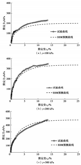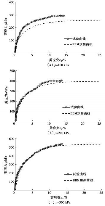 b=0 is given. Based on the results of the true triaxial suction experiments on unsaturated loess, the relevant model parameters of the BBM model are obtained, and the corresponding calculation method is used to predict the test results of the unsaturated loess under the stress paths of