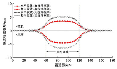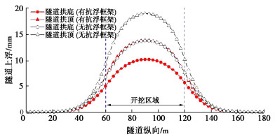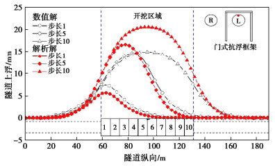 The heave of the existing shield tunnels will be induced due to the above excavation, and then structural damages, including leakage and cracking, easily happen. The combination of the shaft excavation and anti-uplift portal frame is an effective technique to limit the heave of the existing tunnels, while the theoretical method is absent presently for the design of the anti-portal frame. Thus, the analytical solutions for the performance of the existing tunnels are proposed for both the longitudinal and cross-section deformations of the existing tunnels during the shaft excavation and foundation pit excavation, respectively. The flow chart is also provided. The results predicted by the analytical solutions are in good agreement with those of the field measurement and 3D numerical simulation, which proves the reliability of the analytical solutions. The mechanism of the anti-uplift portal frame is carefully investigated, and the sensitivity analysis of the buried depth of the existing tunnels and the excavation size of the shaft is performed. The results show that the anti-uplift portal frame can effectively control the deformation of the existing tunnels caused by the above excavation, strongly depending on the thickness of the soil above the existing tunnels. The efficiency of the anti-uplift portal frame is stronger with the decrease of the thickness of the soil above the existing tunnels. The effects of the anti-uplift portal frame mainly depends on the force between the anti-floating slab and the soil, and the uplift pile shows a minor influence on the deformation of the existing tunnels.