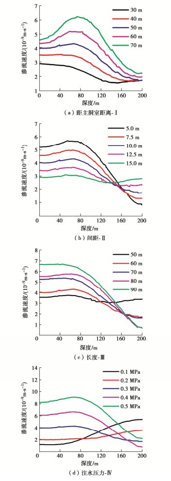 The additional vertical water curtain system is required in the underground water-sealed oil storage cavern project in coastal areas to meet its water-sealed properties and control seawater intrusion. In order to study the design method and parameters for the vertical water curtain system, the influence laws of four parameters of hole distance from the storage cavern (