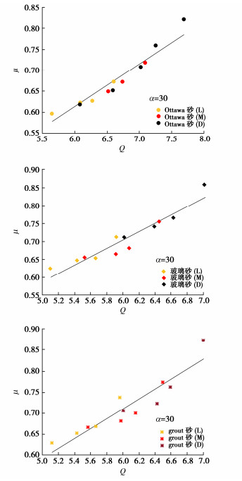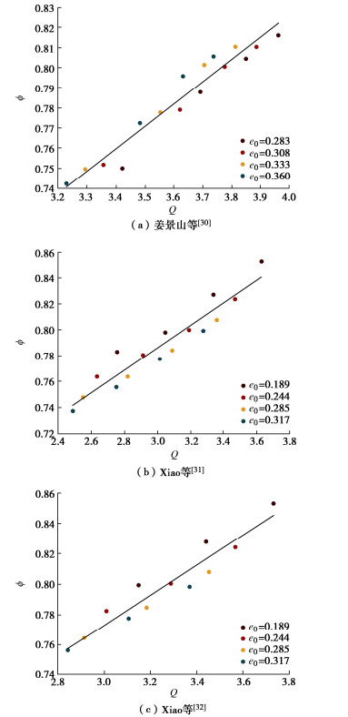 α, for the granular soils considering the particle volume fraction. Based on the classical triaxial test data of soils, the scaling laws of quasi-static deforming sand at the critical state from the perspective of granular physics are explored, and a simple linear relationship i.e.,