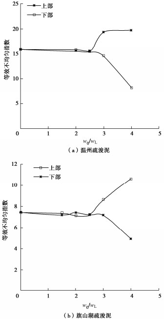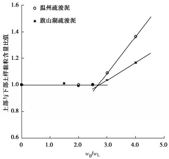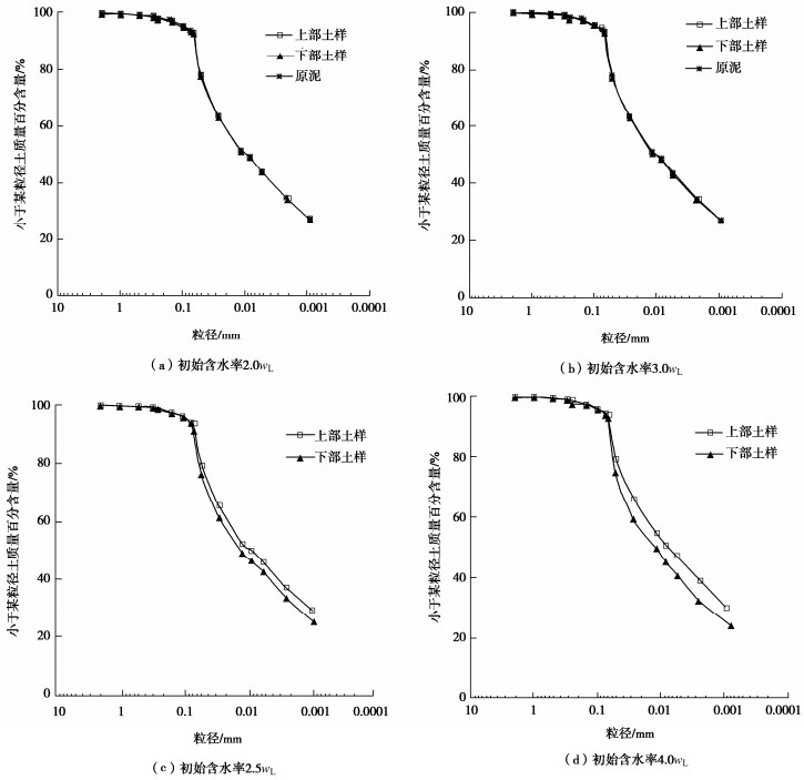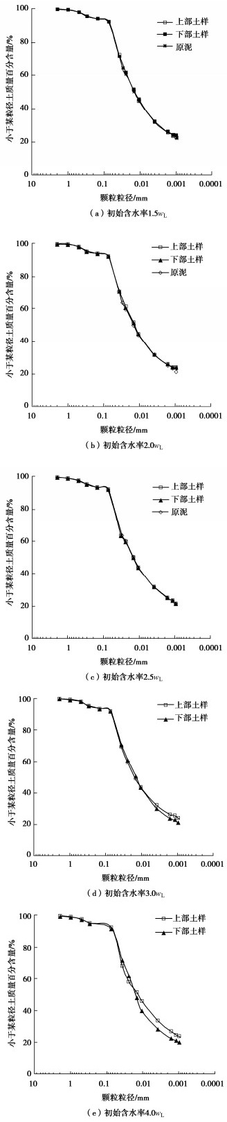 A vacuum consolidation model equipment is designed for performing a series of vacuum consolidation tests on two dredged clays with different liquid limits reconstituted at different initial water contents. The experimental results indicate that the ratio of the initial water content to the liquid limit is a useful dimensionless index for describing the behaviour of fine particle migration of dredged clays under vacuum pressure. It is found that there is a unique critical value of the ratio of the initial water content to the liquid limit for the occurrence of particle migration. When the ratio of the initial water content to the liquid limit is less than the critical value, the particle migration of dredged clays does not occur under vacuum pressure. But in the case that the ratio of the initial water content to the liquid limit is larger than the critical value, the particles of dredged clays migrate to the drainage surface, resulting in the enrichment of clay particles in the vicinity of the drainages. The level of clay particles enrichment increases with the increase in the ratio of the initial water content to the liquid limit.