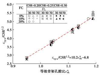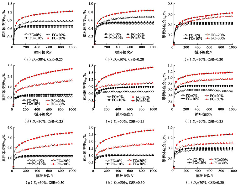 εvp of the coral sand increase with the increase of FC and CSR, and decrease with the increase of