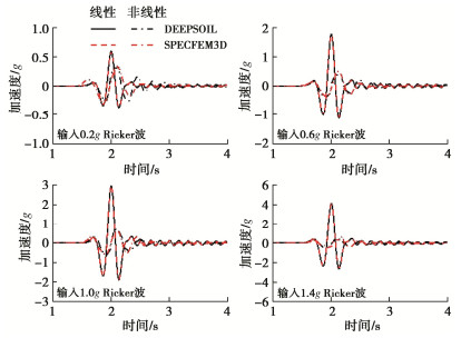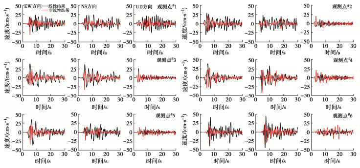 In order to study the influences of nonlinear response of low-wave velocity soil on near-fault ground motion in three-dimensional sedimentary basin, and realize the simulation of three-dimensional complex site ground motion based on the whole process of physics (source rupture-seismic wave propagation-complex site effect-near-surface soil nonlinear response), the secondary development is carried out in the spectral element method code-SPECFEM3D. The three-parameter Martin-Seed-Davidenkov constitutive model with generous engineering applications and suitable for different soil types is adopted. Based on the existing irregular loading and unloading criteria, the real-time updating of shear modulus of soil and the effective identification of loading and unloading inflection points are realized by modifying the stress increment at each explicit time step in the code. The nonlinear characteristics of soil are incorporated into the three-dimensional complex site ground motion simulation. The established three-dimensional model is first degenerated to one-dimensional one by applying a reasonable boundary, and compared with the results of one-dimensional nonlinear dynamic analysis software DEEPSOIL to verify the correctness of the development. Furthermore, the developed code is applied to the nonlinear ground motion simulation of the Shidian Basin in southwestern Yunnan province, China, and compared with the corresponding linear results. The results show that the peak values of acceleration and velocity in Shidian area are lower than those of linear results, and the influences of nonlinear soil on PGV are more obvious, which is about 30% lower than that of linear results. The deposition nonlinearity reduces the velocity and amplitude of response spectra of the receivers inside the deposition, and the characteristic frequency moves to the long period direction.