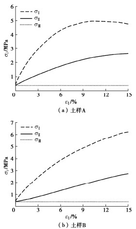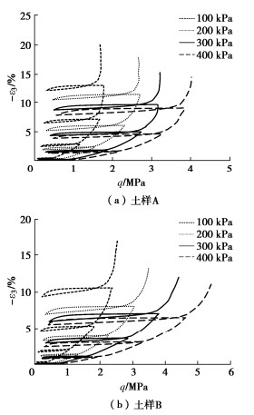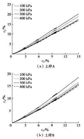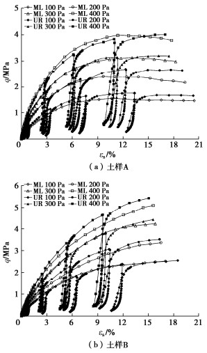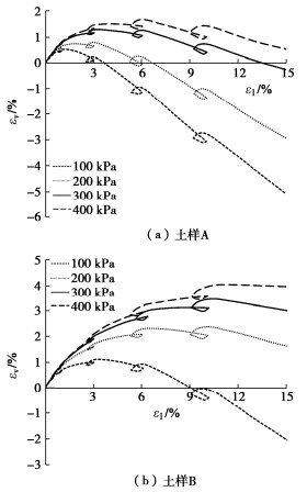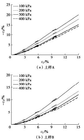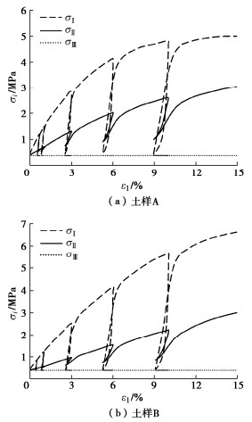 Aiming at the repetitive loading and unloading issue in the plane strain of water conservancy and transportation projects, the large-scale geotechnical triaxial apparatus of Xi'an University of Technology modified with a pressure chamber of plane strain, was used to conduct consolidation and drainage plane strain unloading-reloading tests on two types of gravelly soils under different confining pressures. The mechanical properties investigated include the stress-strain relationship and the unloading rebound strain and unloading-reloading rebound gradient of gravelly soils under plane strain conditions. The results show the particle roundness, pore ratio, parent rock strength and confining pressure of the gravelly soils can all affect the peak shear stress and shear dilation characteristics. The gravelly soils with good particle roundness and small pore ratio have lower peak stress and are more likely to exhibit shear dilation characteristics. Low parent rock strength promotes strain softening and reduces the peak stress, while the increasing confining pressure can suppress shear dilation and increase the peak stress. The volumetric strain and shear strain unloading rebound amount are related to the stress level and confining pressure. The rebound modulus first increases and then decreases with the increase of the stress level, and when the density is high, the rebound modulus is higher; The unloading rebound volumetric strain and the generalized shear strain are influenced by the stress level during unloading and the consolidation confining pressure, while the unloading-reloading rebound gradient is related to the proportion of elastic strain during the loading process. During the unloading-reloading process, the rotation of the principal stress axis is observed, and the stress in the non-strain direction is not always the intermediate principal stress. The rebound gradient is significantly greater than the initial tangent gradient, and the ratio of the rebound gradient to the initial tangent gradient decreases with the increasing confining pressure.