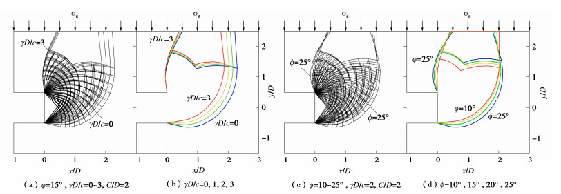 D2 and the relationship between the slip line failure modes and the influencing factors are provided. The load factor