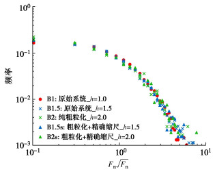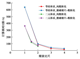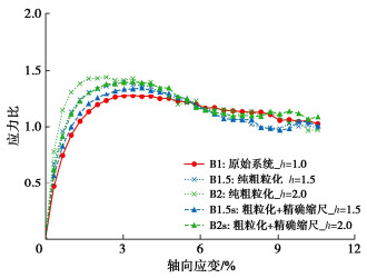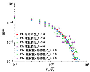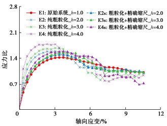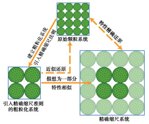 The particle materials are characterized by discontinuity and dispersion, so they face great computational pressure in numerical simulation. The exact scaling criterion and coarse-grained method are introduced into the combined finite-discrete element method (FDEM) to provide a solution for accelerating the numerical simulation of granular materials based on the FDEM. Based on the theories of exact scaling and coarse granulation, the exact scaling criteria for the FDEM are derived. On this basis, the numerical triaxial shear tests for equal diameter particle system and binary particle system are carried out respectively. The test results show that without the introduction of the exact scaling criteria, the mechanical response characteristics of the coarse-grained model will change, resulting in distortion, and the parameters of the coarse-grained model need to be corrected. After the introduction of the exact scaling criteria, the mechanical response characteristics of the coarse-grained model are corrected. The test results demonstrate the effectiveness of introducing the exact scaling criteria and coarse granulation method into the FDEM. It can greatly improve the computational efficiency of numerical simulation of granular materials using the FDEM under the similar conditions to the original particle system. Based on the numerical test results, the macroscopic stress deformation and mesoscopic contact force are correlated, and the micromechanical mechanism of the exact scaling and coarse-grained methods is revealed.