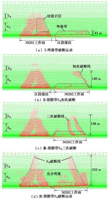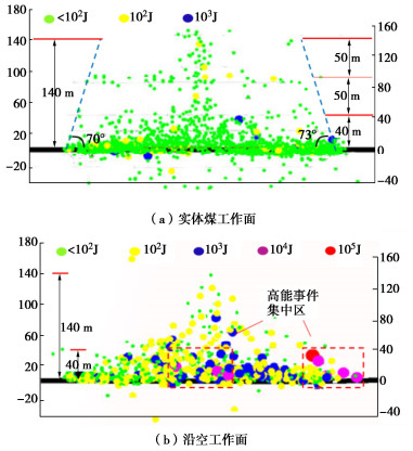 The instability-induced rockburst of thick hard rock stratum-coal pillar structure is a typical rockburst mode in Ordos deep mining area, and its mechanism is still unclear. Taking the 30202 working face of a mine in Ordos deep mining area as the engineering background, the instability-induced rockburst mechanism of thick hard rock stratum-coal pillar structure in deep fully mechanized mining face with large mining height is studied by means of the theoretical analysis, numerical simulation and field measurement, and the following conclusions are drawn: The spatial movement characteristics of thick hard rock stratum-coal pillar structure in deep fully mechanized mining face with large mining height are discussed. The mechanism of instability-induced impact of the thick and hard rock stratum-coal pillar structure is revealed, i.e., the foundation stress of the section coal pillar comes from the self-weight of the in-plane thick and hard rock stratum group and the adjacent mined-out area, when it reaches the strength limit, the in-plane thick and hard rock stratum breaks in a "W" shape and transmits additional stress, and when the superimposed stress of the section coal pillar exceeds its failure threshold, local or even whole instability impact occurs. It is found through the numerical simulation that the load transmitted by the "W"-shaped twice breaking motion of the thick and hard strata group is the main stress source of the instability impact of the coal pillar near the working face. The control system of instability-induced impact of the thick hard rock stratum-coal pillar structure in deep fully mechanized mining face with large mining height is designed and implemented, including strong unloading of bearing coal pillar, strong support in disturbed areas and strong control of advancing speed. The effectiveness evaluation verifies that the anti-impact system can ensure the safe mining of the working face.