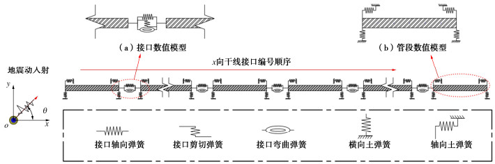 The joint type and cross connection pattern of buried pipelines have a significant impact on the seismic responses of pipeline structures. As the seismic deformation and stress of pipeline cross are determined by the structural types of branch pipelines, a finite element model for straight branch pipelines is firstly established to investigate the joint displacement and relative pipe-soil displacement of ductile iron pipelines (DIP) with flexible socket rubber joints and cast iron pipelines (CIP) with rigid joints under seismic wave propagation. Then, the seismic responses of pipeline connections using cross-shaped, T-shaped, L-shaped and double-T-shaped cross connections are analyzed, where the pipe cross is connected to the branch pipelines using the socket or flange joints. Furthermore, the effects of joint types on the seismic responses of pipeline cross connections are evaluated. The results show that for the straight pipelines with different types of joints, the peak joint displacement of the DIP with flexible joints is larger than that of the CIP with rigid joints. When the pipe cross is connected with the socket joints, the peak joint displacement of the pipelines with double-T-shaped cross is slightly smaller than that of the pipelines with cross-shaped and T-shaped connections. When the pipe cross is connected using the flange joints, the DIP with flexible joints adjacent to the flange joints exhibits a larger joint displacement and is prone to tensile failure, while the CIP with rigid joints adjacent to the flange joint experiences greater axial compressive force and is prone to compressive failure. At the cross of double-T-shaped pipelines, the responses of the socket joints adjacent to the flange joints are significantly larger than those of the cross-shaped and T-shaped connections.