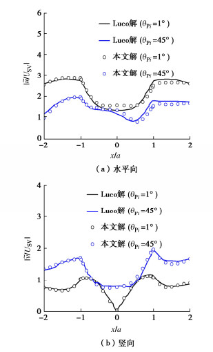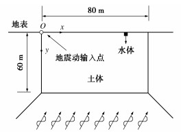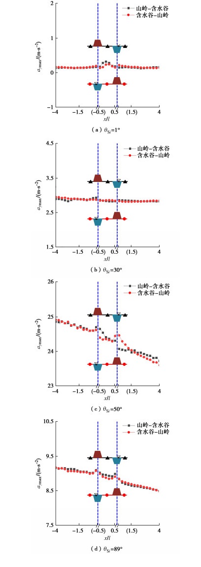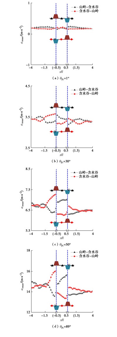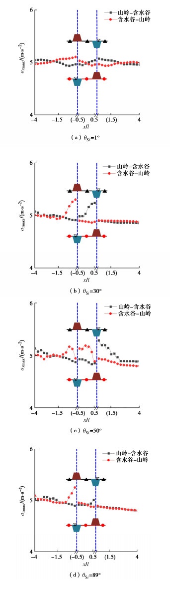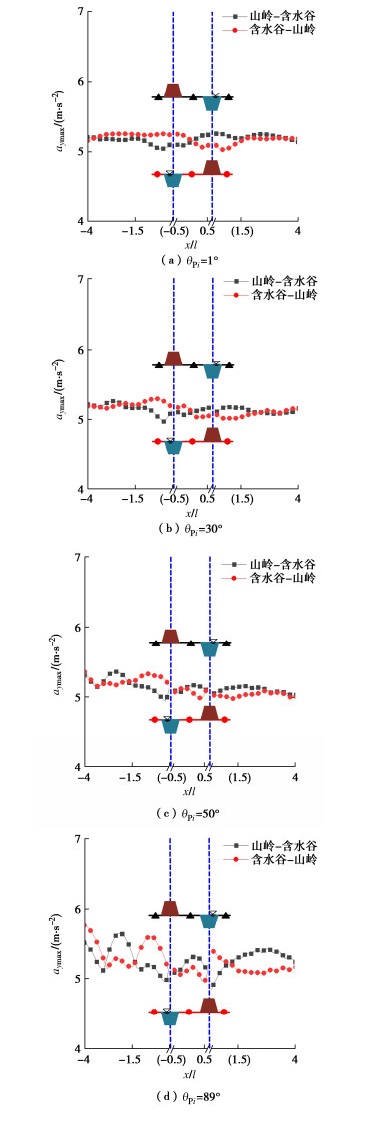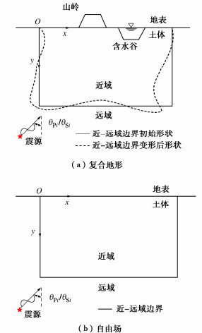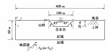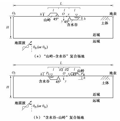 As a common composite terrain, the effects of the irregular topography of hill and water-filled valley on the ground motion are currently unclear. Therefore, the coupling of soil and liquid in finite domain is realized through the theoretical analysis, the seismic analysis of irregular topography of hill-water-filled valley under oblique incident P- and SV-waves by the finite-infinite element method is conducted, and the effects of the relative position between the hill and the water-filled valley on the ground motion are discussed. The new findings of this study include: (1) The hill located at the incident side of the seismic waves of the water-filled valley can restrain the amplification effects of the maximum horizontal acceleration of ground on the "near" edge of the water-filled valley under P- and SV-waves. (2) For the SV-waves with overly critical angles and the hill located at the incident side of the seismic waves of the water-filled valley, the maximum horizontal acceleration of ground on the "far" edge of the water-filled valley is amplified instead. (3) The relative position between the hill and the water-filled valley, the seismic wave types and the critical angles have significant influences on the displacement spectra at both sides of the irregular topography.