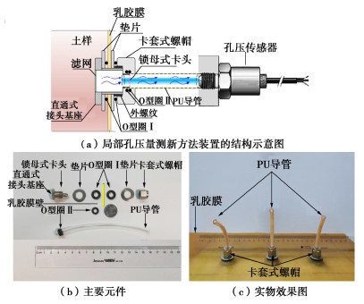 Measuring the pore-water pressure within a soil mass is critical for studying its hydraulic properties. Due to the granular structure characteristics of soil, the fine particles within soil are prone to migrate with the movement of water flow. The migration of fine particles may change the distribution of the pore-water pressure, thereby altering the local structure and hydraulic properties of soil. In this study, a new method with measurable local pore pressure is introduced to capture the localized response of pore structure of soil induced by the migration of fine particles. The new method meets the sealing requirements of the latex membrane with inserted pipes under stress. Thus, the pore-water pressure transducers can be arranged along the axial and radial directions of the soil specimens to measure the pore pressure at various positions, thereby helping to study the local hydraulic properties. The global and local evolution characteristics of the soil specimens during suffusion are studied using new the method in the suffusion tests. The results show that the new method has a satisfactory response. The spatial and temporal evolution of local hydraulic conductivity reveals that the migration of fine particles along seepage path exhibits significant localization and non-uniformity.