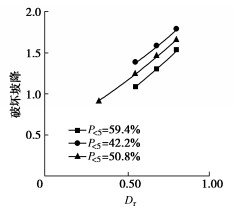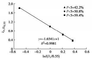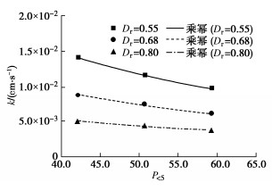摘要: 开展了不良级配高细料含量覆盖层砂砾石料的渗透特性试验研究。结果表明:随相对密度和小于5 mm粒径颗粒含量的增加,渗透系数降低。渗透系数随相对密度的变化可用半对数公式描述,渗透系数随P<5含量的变化可用幂函数描述。通过归一化方法提出了渗透系数经验公式,可预测试验或文中建议范围内鄱阳湖覆盖层砂砾料的渗透系数。高细粒含量砂砾石料的渗透变形破坏方式主要为过渡型或流土型,随相对密度和P<5含量的提高,渗透变形破坏方式逐渐由过渡型趋向于流土型。Abstract: A series of tests are conducted on the permeability characteristics of sandy gravel with high fines content. It is found that the permeability coefficient of sandy gravel decreases with the increase of the particles less than 5 mm and the relative density. The change of permeability coefficient with the relative density can be described by the semi-logarithmic formula, and the change of permeability coefficient with the content of particles less than 5 mm can be described by the power function. By using the normalization method, the empirical formula is proposed to predict the permeability coefficient of sandy gravel for overburden in Poyang Lake area. The seepage deformation of sandy gravel with high content of particles less than 5 mm is characterized by the soil flow failure or transitional failure. With the increase of the content of particles less than 5 mm and the relative density, the transitional failure turns to the soil flow one.
