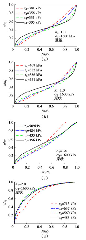 The ultra-deep overburden foundation is a great challenge for the construction of water conservancy and hydropower projects. The dynamic mechanical properties of overburden soil are the basis for discriminating liquefaction of foundation soil and analyzing dam stability. The sand layer in the ultra-deep overburden foundation of a proposed large-scale earth rock dam project is taken as the research object. A series of undrained cyclic triaxial tests are conducted on the undisturbed soil samples (directly extracted from an ultra-deep in-situ test well) and remolded soil samples under high confining pressure conditions. The laboratory results demonstrate that the dynamic strength of the undisturbed sand is higher than that of the remolded sand, and the difference between them gradually decreases with the increase of the confining pressure. The evolution laws of pore pressure and axial strain of the undisturbed and remolded soil samples are similar. The consolidation stress ratio has obvious influences on both the dynamic strength index and the failure mode of the soil samples. With the increase of the consolidation stress ratio, the dynamic strength increases, and the failure mode of the soil samples gradually changes from liquefaction failure to plastic strain accumulation one.