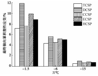 The deformation characteristics and stability behaviors of frozen soil under complex cyclic stress paths play an important role in the long-term stability of cold region engineering. To analyze the influences of different complex cyclic stress paths on the deformation characteristics and shakedown behaviors of frozen soil, five cyclic stress paths are designed at the same level, namely triaxial cyclic stress path (TCSP), directional cyclic stress path (DCSP), circular cyclic stress path (CCSP), elliptical cyclic stress path (ECSP) and heart-shaped cyclic stress path (HCSP). The axial cumulative plastic strains of the samples are analyzed, and the results are evaluated by three shakedown evaluation criteria. The axial cumulative plastic strains under five cyclic stress paths at different temperatures satisfy the following: DCSP > ECSP > HCSP > CCSP > TCSP. The directional cyclic stress path has the greatest influences on the shakedown behaviors of the soil, and the failure belongs to the incremental one under the three criteria. At the temperature of -15℃, the results of the HCSP and ECSP tests also belong to the incremental failure under the evaluation of Chen criterion.