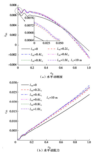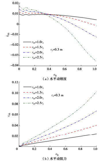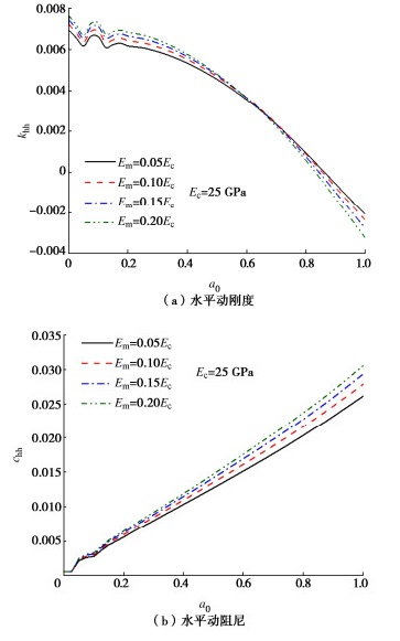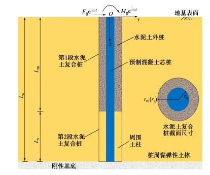 Cement-soil composite pile is often utilized as the foundation of offshore bridges or wind turbines to resist lateral vibrations in natural environments. A mathematical model is proposed for the coupled vibration of the cement-soil composite pile and the soil around the pile under lateral dynamic loads through theoretical derivation. Then, the analytical expressions for the horizontal and rocking dynamic impedances at the pile head are obtained through theoretical derivation. Finally, the influence of cement-soil parameters on the dynamic impedance are studied through numerical calculation and parametric analysis. The results reveal that the increase of the cement-soil radius will increase the horizontal and rocking dynamic impedances, but it is not conducive to the horizontal dynamic impedance at high frequency vibration. The cement-soil depth should not exceed its effective reinforcement depth. The increase of the cement-soil elastic modulus is beneficial to improve the dynamic impedance of pile head.