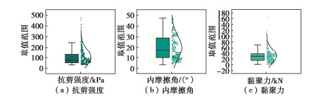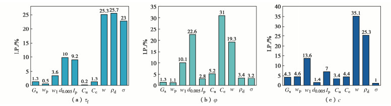 R2 values of 0.925, 0.965 and 0.942. The sensitivity analyses reveal that the dry density, moisture content and normal stress exert the most significant influence on the shear strength, while the key factors for the internal friction angle are the coefficient of curvature, viscous grain content and water content. The water content, dry density and liquid limit are identified as the primary influencers on the cohesion. The data-driven model established herein offers guidance for selecting the shear strength indexes in engineering and investigating strength parameters of soils through the machine learning methods.