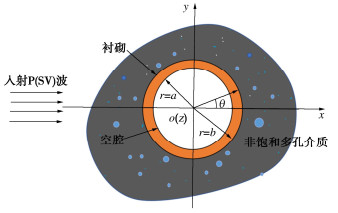 In this study, two-dimensional scattering of plane waves by a cylindrical lined cavity embedded in an infinite unsaturated poroelastic medium is solved by the wave function expansion method. The unsaturated poroelastic medium is simulated as a poroelastic model formulated using the theory of mixture with interfaces, and the governing equations are solved by reduction to four Helmholtz equations. The lining structure is considered as a single-phase elastic medium and decoupled into two Helmholtz equations. Using the boundary conditions to solve the undetermined coefficients in the wave function, the analytical solutions are obtained for the scattering problem of plane P-waves and SV-waves around cylindrical lined cavities in unsaturated porous elastic media. Using the analytical solutions, numerical calculations are conducted to analyze the effects of factors such as saturation on the dynamic stress concentration coefficient around the lined cavity.