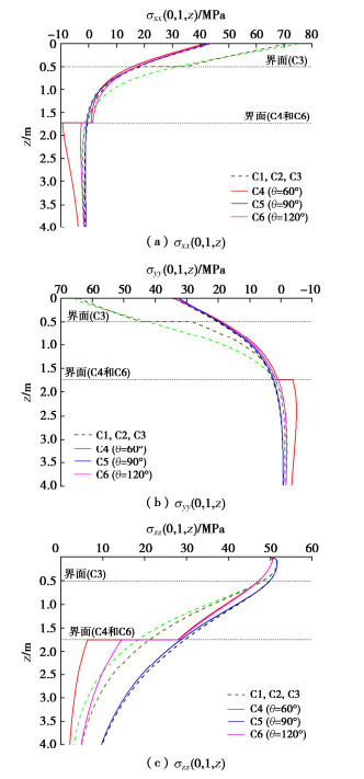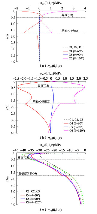 A new boundary element method (BEM) is developed for accurately calculating the additional stresses and settlements in non-horizontally layered foundations. The proposed BEM utilizes the fundamental solutions for multilayered solids with transverse isotropy (TI) under point-concentrated loads. The eight-noded isoparametric elements are used to discretize a core region around the traction area, whereas the six-noded infinite elements are used to discretize a far-field region beyond the traction area. To avoid calculating the coefficient of the free term for the source point at the strike line between the boundary and the material interface, the discontinuous isoparametric and infinite elements with nodes located within elements are positioned near the strike lines. Numerical methods for non-singular and various singular integrals in the discretized boundary integral equations are developed. The numerical verification shows that the proposed BEM has very high accuracy and computational efficiency. The numerical examples illustrate the effects of anisotropy and non-horizontal layered structures of the foundations on the elastic fields.