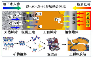 The highly compacted bentonite, as the preferred buffer/backfill materials, is inevitably subjected to chemical erosion in the T-H-M-C environment of the high-level radioactive waste repositories, leading to dissolution or phase transition of smectite, and diminishing the buffer performance. The latest researches on the chemical mechanism are summarized on the basis of reviewing the effects of the solution on the buffer performance of the compacted bentonite. The analysis indicates that the dissolution or phase transformation of layered smectite into a framework mineral is the key factor leading to the attenuation of the specific surface area, density, water retention, swelling and permeation resistance of bentonite. The chemical interaction mechanisms include mineral phase transformation and chemical cementation. The phase transformation of minerals is influenced by chemical composition, pH, temperature and catalytic ions of the pore solution, and can be divided into isomorphous phase transformation and recrystallization. The chemical cementation associates with saline precipitate filling and the cementation of aluminosilicate gelation during wetting-drying cycles. The dissolution rate of minerals in bentonite is influenced by both the intrinsic factors like surface area and stress, and the extrinsic factors including pore solution. Further clarification of chemical reaction parameters, cementation effects and multi-field coupling reaction model within the bentonite reaction system remains the focus of further researches on the chemical evolution of bentonite in the future.