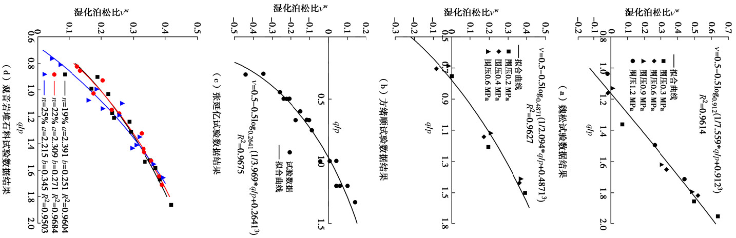 Wetting deformation is part of the main post-completion deformation of earth-rock dams, which has important influences on the stress deformation behavior of dam body and the safety of dam body for the initial impoundment. Based on the previous research results of wetting deformation characteristics, the proposed wetting deformation model and further comprehensive analysis of a large number of wetting test results, the relationship between wetting strains and their variation rules are summarized and improved, and the elastic and plastic mechanical parameters representing this characteristic are deduced. Under the framework of the nonlinear elasticity theory, a new formula for calculating the Poisson's ratio of wetting is proposed, and the close relationship among the wetting Poisson's ratio, the average effective stress p and the generalized shear stress q is established. In the framework of the plasticity theory, an accurate wetting dilatancy equation is proposed. It is found that the correlation coefficient between the calculated results of the Poisson's ratio and the dilatancy ratio proposed in this study and the test data is above 0.95. Therefore, the proposed methods for the wetting Poisson's ratio and the wetting dilatancy ratio are generally applicable, accurate and reliable, and the research results can provide important reference and support for the study of the wetting deformation characteristics of rockfill and the elastic or plastic simulation of the wetting deformation of rockfill dams.