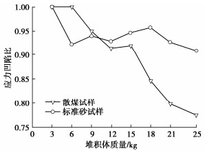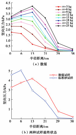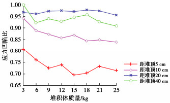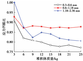 • 摘要: 针对颗粒材料堆积体的压力下降问题,研究了点沉积法下不同漏斗高度、颗粒粒径和颗粒形状对基底压力分布的影响。结果显示,基底压力下降现象与内部应力拱有关,且与漏斗高度、颗粒粒径和颗粒形状相关。随着堆积体质量的增加,应力拱稳定性增强,应力凹陷比趋于稳定。漏斗高度距堆顶距离越大,测得的基底压力越大,应力凹陷程度越小。堆积体应力凹陷比随颗粒粒径的增加,呈现先增加后减少的趋势,并在粒径0.6~1.18 mm的堆积体中出现了应力集中现象。随着堆积体质量的增加,标准砂试样的应力凹陷比先增加后减小,而散煤则是一致下降。