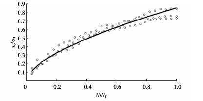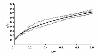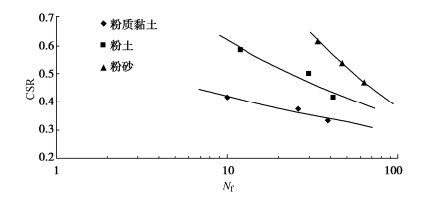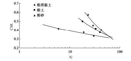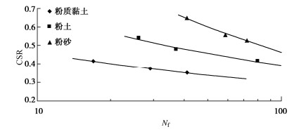 By simulating wave loads, the dynamic triaxial shear tests foundation soils of on breakwaters under isobaric consolidation and undrained flow are carried out. The analysis shows that the cyclic shear stress ratio can be fitted by the power function with failure frequency, but the fitting parameters are not constant. The pore water pressure of soils will increase continuously in the course of shear, but it does not reach the initial value of confining pressure. When it reaches the failure standard, it is about 60%~80% of the initial confining pressure. The relationship between the dynamic pore pressure ratio and the vibration frequency ratio can be well fitted by the power function, and the fitting parameters are not constant, which are related to soil properties. At the beginning, the axial strain is very small, and the compressive strain is less than the tensile strain. At the middle and later stages, the axial strain increases rapidly, and the compressive strain gradually exceeds the tensile strain.