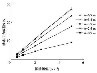 Taking the main canal aqueduct of Pihe River of the Yangtze-to-Huaihe Water Diversion Project as a reference research object, an experimental study is conducted on the dynamic water pressure of a rigid aqueduct under harmonic excitation using a centrifuge shaking table. The experimental results are compared and analyzed with those of the commonly used simplified models. The experimental results show that the dynamic water pressure is linearly correlated with the amplitude of acceleration, and nonlinearly correlated with the loading frequency and water depth. The centrifugal model tests can accurately simulate the dynamic water pressure and fluid-structure coupling effects, providing new analytical methods for the studies on the hydro-elasticity problems.