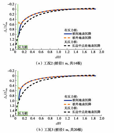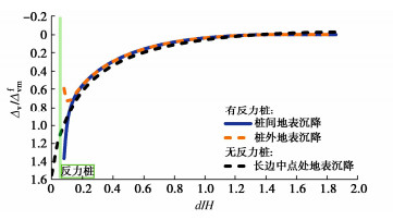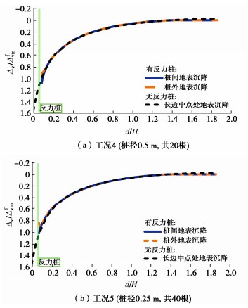 Constructing underground railway stations using the pressed continuous caisson group is a new type of prefabricated assembly construction mode. However, compared to the traditional open-pit excavation method of station construction, there is currently a lack of research on the environmental impact of the caisson pushing process. Therefore, taking the actual projects as a background, this study conducted numerical simulations and combined existing measured data to fit subsidence profile curves. The influences of the presence or absence of the reactive piles outside the caissons on the surface settlement profile are investigated. Further investigations are done on the regulation effects of pile spacing on the surface settlement. Based on the principle of the equivalent anti-pulling bearing capacity, the influences of pile spacing and pile diameter on the settlement of the surrounding soil are also explored. Consequently, a modified normalization curve for the settlement profile of the soil outside and between piles is formed, and it may provide reference support for the implementation of the underground stations with pressed continuous caisson group in densely populated urban centers.