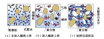 The vacuum preloading technology is widely used in the treatment of large-area silt foundations formed by dredging. In order to improve the traditional vacuum preloading reinforcement effects, a method of vacuum preloading combined with alkali residue treatment is proposed for dredging silt foundations. By conducting the indoor vacuum preloading model experiments and microscopic tests, the reinforcement effects and mechanisms are explored and analyzed. The research results show that compared with the conventional vacuum preloading method, the new method has significantly improved the reinforcement effects, with an increase of about 20% in the drainage and surface settlement. After reinforcement, the water content of the soil is reduced by 34.9% from 90%, and the maximum vane shear strength is increased by 1.33 times. Through the SEM and mercury intrusion tests, it is found that the alkali residue can promote particle aggregation, reduce the content of fine particles in the soil, and increase the permeability of dredged sludge. Strong hydration reactions may occur between alkaline slag and clay minerals, generating products. This study provides a theoretical basis for the technological development of improving the vacuum preloading methods and the efficient utilization of alkali residue.