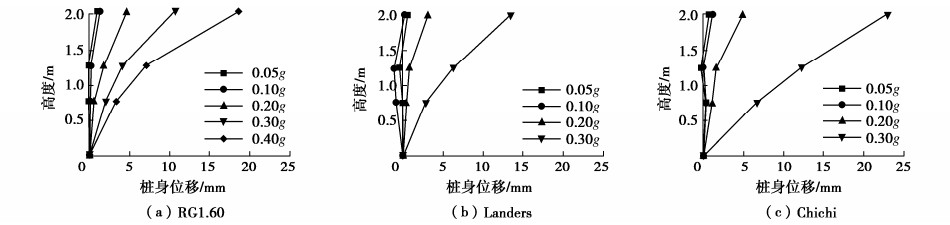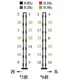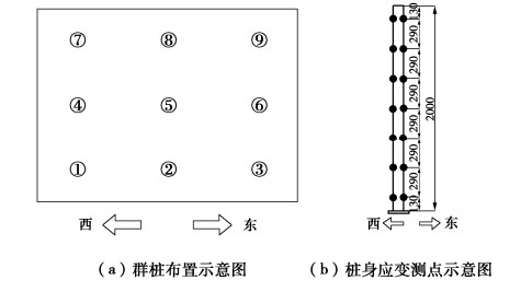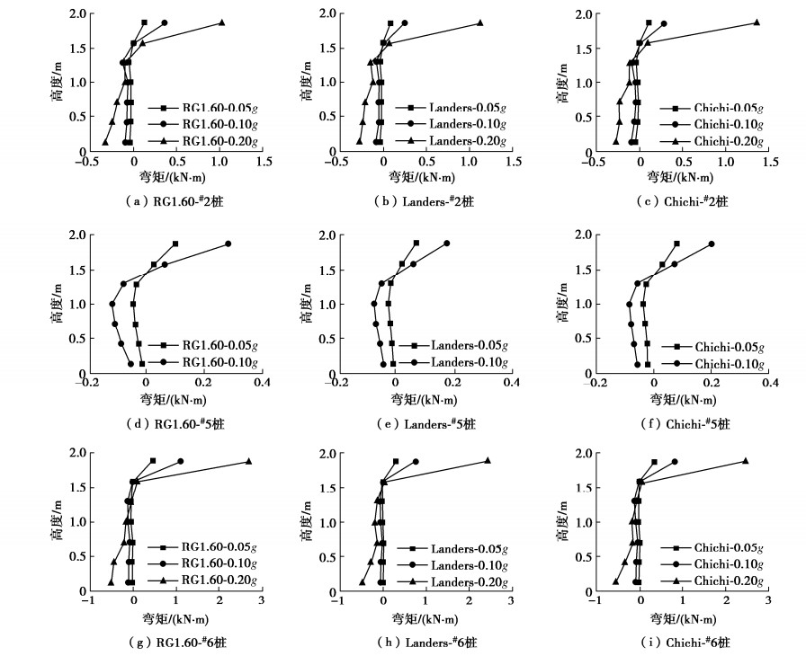 A non-rock site-pile group foundation-safety-related nuclear structure system model is established by using the large-scale shaking table test method to study the seismic response, distribution of internal force and failure of pile-group foundation under nuclear power structures. The soil model in the tests is the uniform silted clay, and the circular laminar shear container is used to take the boundary effects of soil into consideration. The pile-group foundation is composed of 9 piles with a diameter of 10 cm and a length of 200 cm, arranged symmetrically according to 3×3. The actual safety-related nuclear structures are simplified into a three-layer frame-shear wall structure model. The research results show that the main failure mode of the pile-group foundation is bending tensile failure, most of which is located in the depth range of 4~7 times the pile diameter from junction between the pile top and the cap, and damage of the junction is the most serious, where the bending moment is also greater than that at other positions.